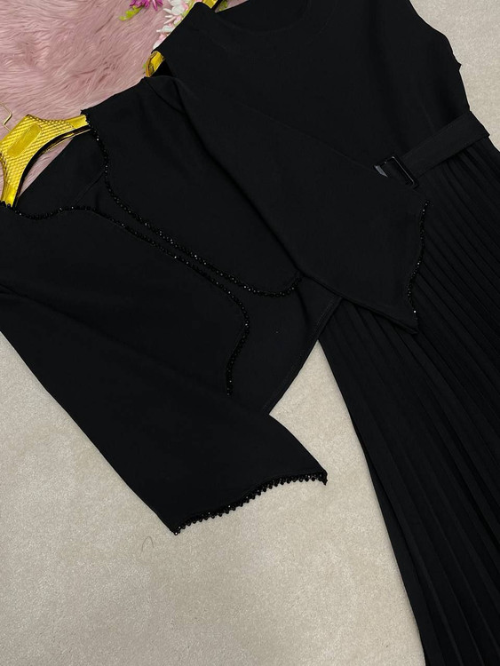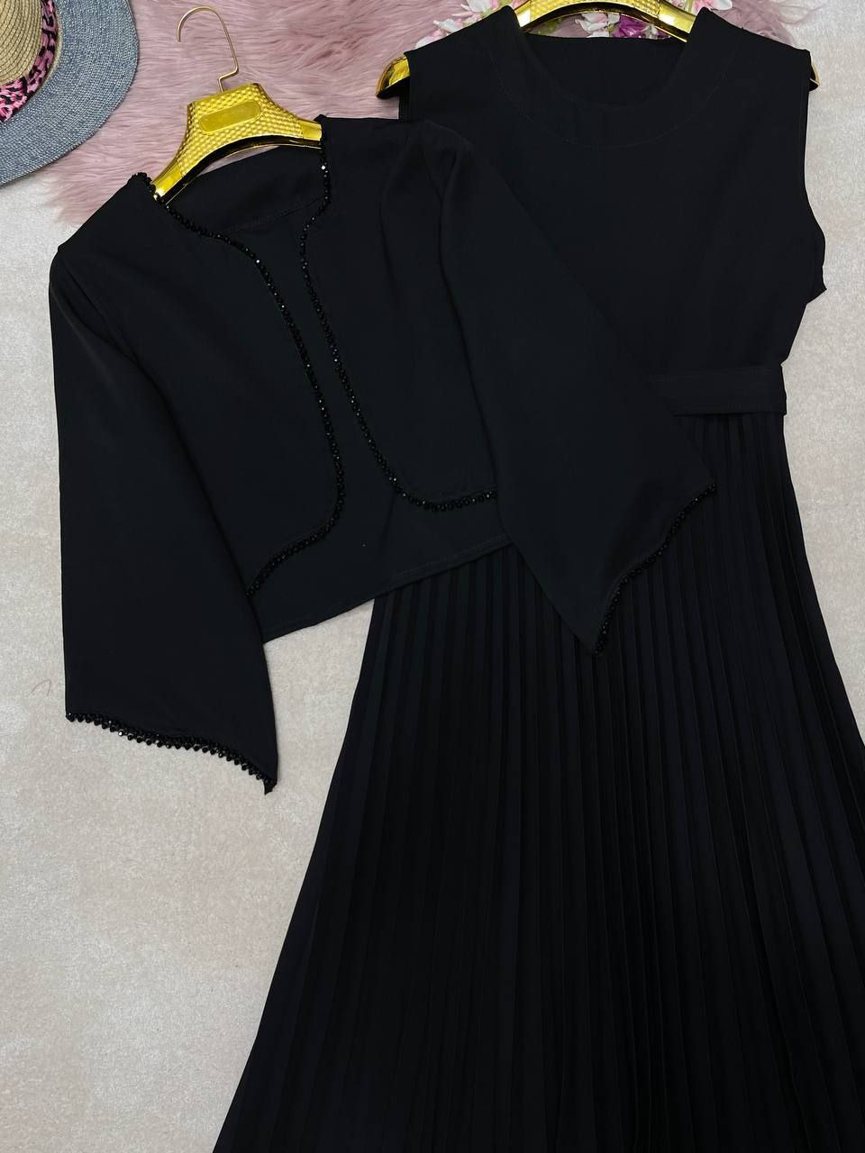 پارچه کرپ مازراتی مقاومت بالایی دارد. و همچنین ماندگاری و طول عمر بالا دارد. کشسانی خیلی خوبی دارد. جنس این کت و سارافون لطیف، صاف و بدون چروک است.